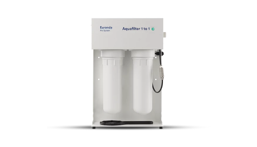 Az Aquafilter 1-1 nem igényel külön tápcsatlakozást. A szűrő egyszerűen a csatlakoztatott Euronda autoklávból nyeri az erejét. A szűrő ideális falra szereléshez is. Alternatív megoldásként szabadon is használható – nincs szükség összeszerelésre. Az optimális sterilizálási eredmény érdekében LED jelzi az előállított víz minőségét.