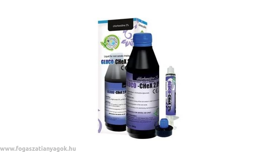 A Gluco-Chex egy 2% klórhexidin-diglukonát tartalmú antibakteriális gyökércsatorna öblítő, ami hatékonyabban öl el olyan - a sikertelen endodonciális kezelésért felelős - baktériumokat, mint a nátrium-hipoklorit.