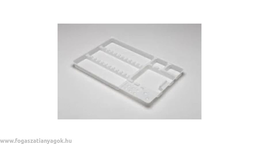 Fogászati és egyéb orvosi műszerek kezelés közbeni tárolására szolgáló, egyszer használatos műanyag tálcák, csúszásmentes aljjal.