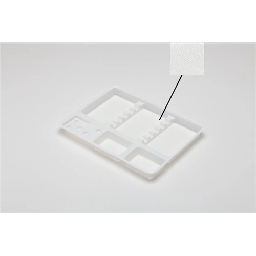 Fogászati és egyéb orvosi műszerek kezelés közbeni tárolására szolgáló, egyszer használatos műanyag tálcák 19x15x1,7 cm.